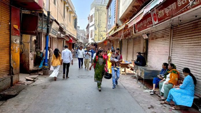 MATHURA (UP), May 5 : Traders in Vrindavan kept their shops shut on Monday in response to a “bandh” call by local Hindu organisations to protest against the terrorist attack in Pahalgam that claimed the lives of 26 people.