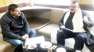 President Exhibition Ground Traders and businessmen Pramodh Kapahi discussing problems of trading community with Minister of Industries & Commerce Chander Parkash Ganga on Thursday at Jammu.