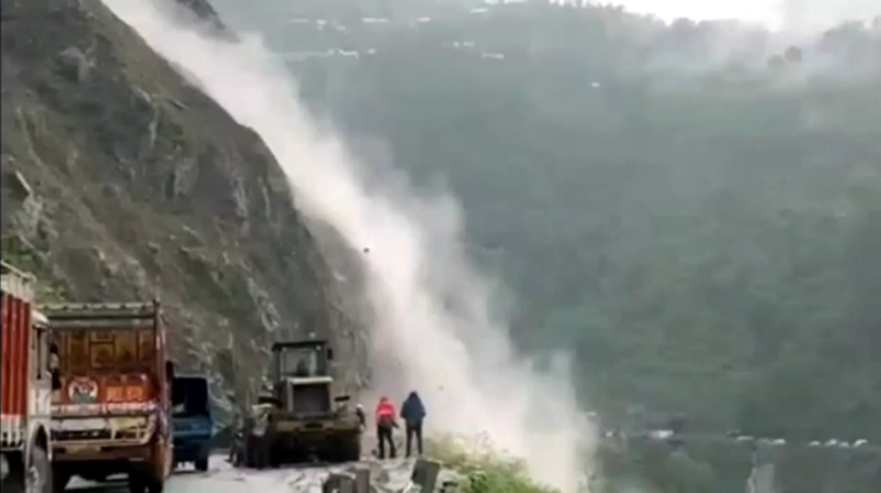 Again, at around 5 pm, the shooting stones at dangerous Panthyal zone, suspended the movement of vehicles on the highway. The movement of the vehicles could be restored only around 7.30 pm after road clearance work. But the movement remained very slow as single vehicle at one time was allowed to pass this 200 mtrs dangerous stretch. There was light rain in the area during afternoon, however, no major land slide was reported today in this sector.