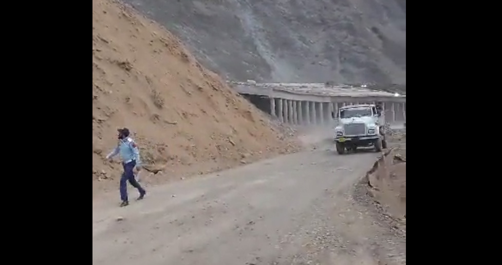 The officials said the restoration work was hampered several times during the day by frequent shooting stones from the hillock overlooking the highway which was, however, partially opened late in the evening for stranded vehicles.