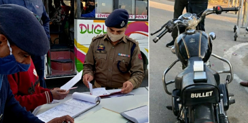 On the directions of SSP Traffic Jammu Shiv Kumar Sharma, a drive was carried out at Jammu City’s South area by DySP Traffic City South Sunil Singh along with DTI Narwal Inspector Ashwani Kumar, DTI Satwari Inspector Vikas Kant and DTI Railways Inspector Ashish Khajuria against modified silencers.