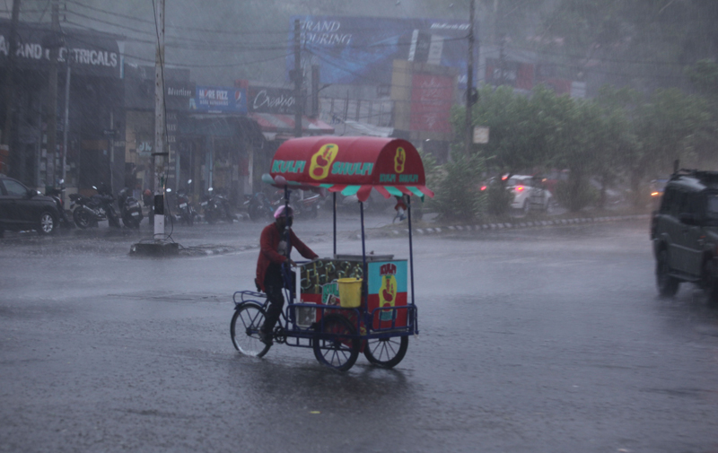 Due to heavy rain in many parts of Jammu region during morning hours today, a sharp fall in the temperature has been witnessed. The people had a sigh of relief from the hot and humid weather conditions after rains.