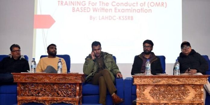KARGIL, Nov 19: The LAHDC–Kargil Subordinate Services Recruitment Board (KSSRB) conducted a comprehensive training programme today for senior officers and staff responsible for the smooth conduct of the upcoming OMR-based written examination for district cadre posts. The session focused on ensuring transparency, accuracy, and strict adherence to examination guidelines.
