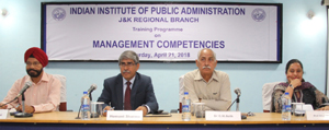 JAMMU, Apr 21: A one-day training programme on “Management Competencies” was organized by Indian Institute of Public Administration, J&K Regional Branch, Jammu today.