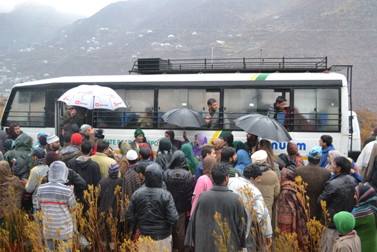 With the intervention at the higher level in Delhi and Islamabad, today the weekly bus service (Every Monday) between Poonch and Rawlakote and Srinagar- Muzaffarabad via Uri was resumed today. The passengers struck on the either sides were cleared. Many of them were running short of money.