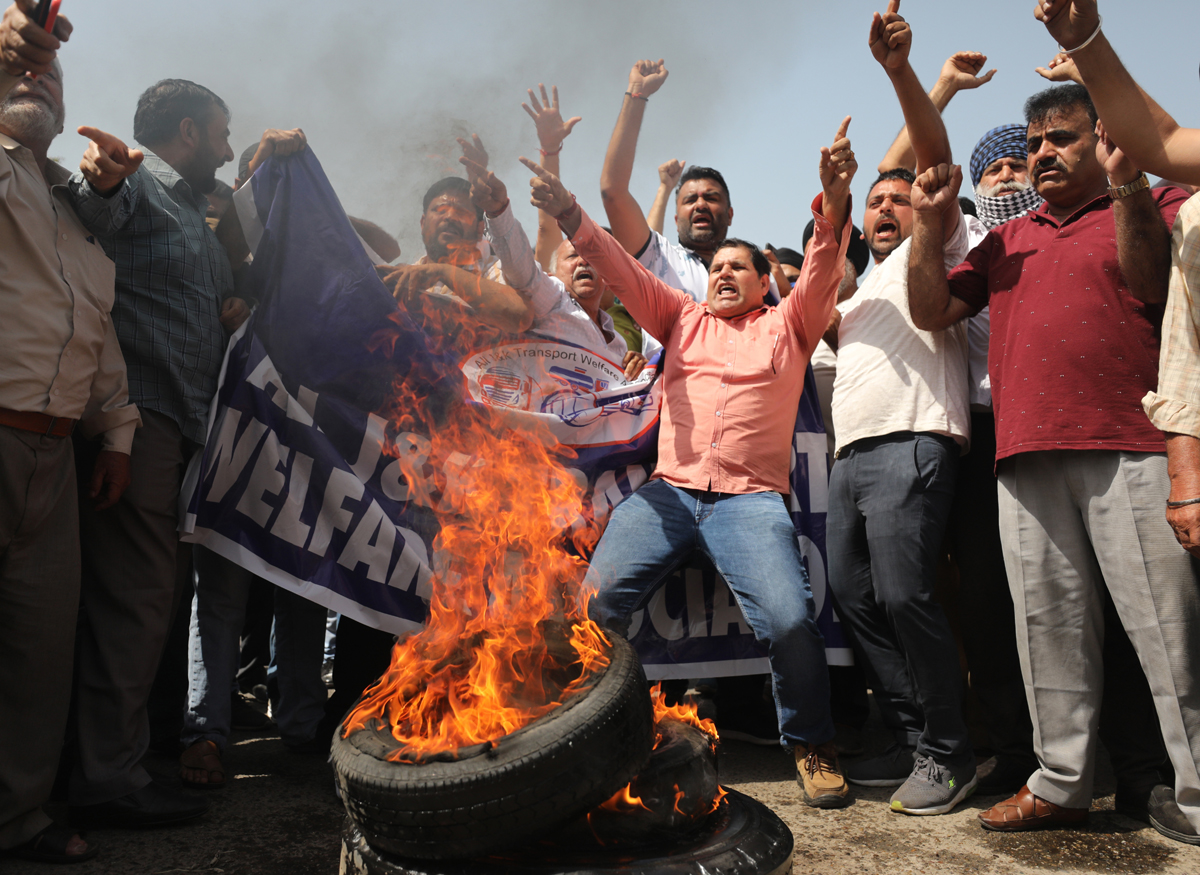 Transporters took out protest march towards Bikram Chowk but police contingent did not allow them to move ahead. They dispersed after burning tyres. The traffic movement was also disrupted for some time in the area.