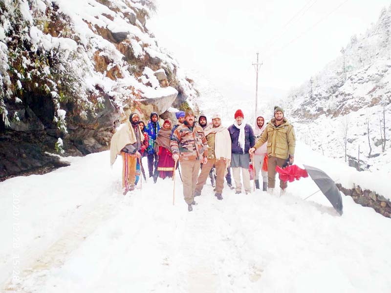 Trapped in heavy snow, five tourists and 10 locals being rescued by police and GREF men from Sarthal in Bani area. -Excelsior/ Pardeep By Daily Excelsior - December 29, 2020 Share FacebookTwitterWhatsAppPinterestLinkedinCopy URLTelegramEmailTumblrReddItPrintKoo Trapped in heavy snow, five tourists and 10 locals being rescued by police and GREF men from Sarthal in Bani area. -Excelsior/ Pardeep Trapped in heavy snow, five tourists and 10 locals being rescued by police and GREF men from Sarthal in Bani area. -Excelsior/ Pardeep Follow our WhatsApp channel