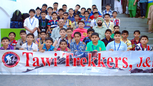 Trekkers posing alongwith Ram Khajuria, general secretary of Tawi Trekkers before leaving for Moungri.