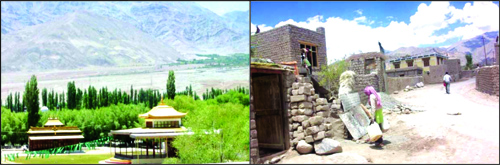 Migratory settlement of Kharnakling ‘Rabo’ colony is located near Choglamsar, 8 km from Leh. This settlement is home to the migrants of Kharnakzara, Samad Rukhten and Kurzok. These nomadic tribes were forced by natural and other circumstances to migrate from Changthang (90% from Nyoma block and 10% from Sham village in Nubra block). They migrated to survive under duress, between 1985 and 1995 by crossing Thang-lang-la pass on horse-back.
