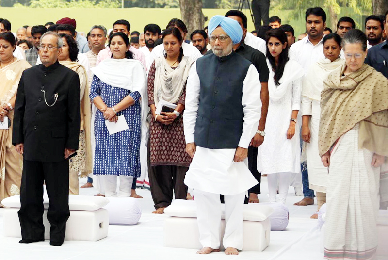 Later, Sonia, Rahul, Singh along with Mukherjee and former vice president Hamid Ansari attended a prayer meeting at the Indira Gandhi Memorial at 1 Akbar Road here.