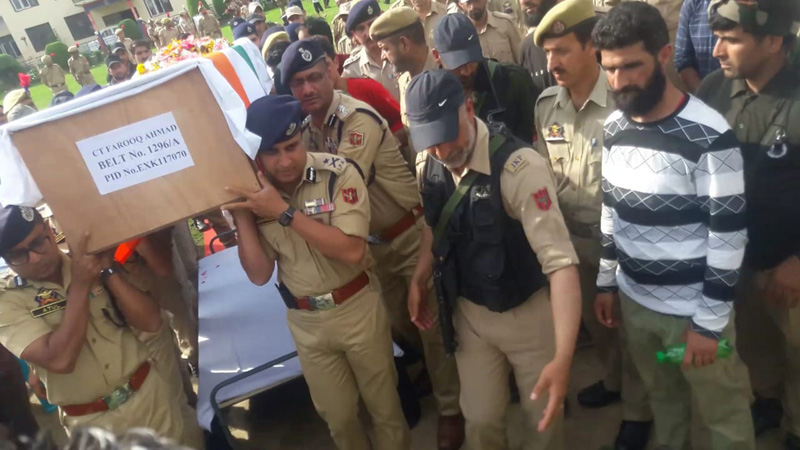 SRINAGAR, July 19: Jammu and Kashmir Police today paid rich tributes to a Constable, who was martyred in a militant attack in south Kashmir district of Anantnag.