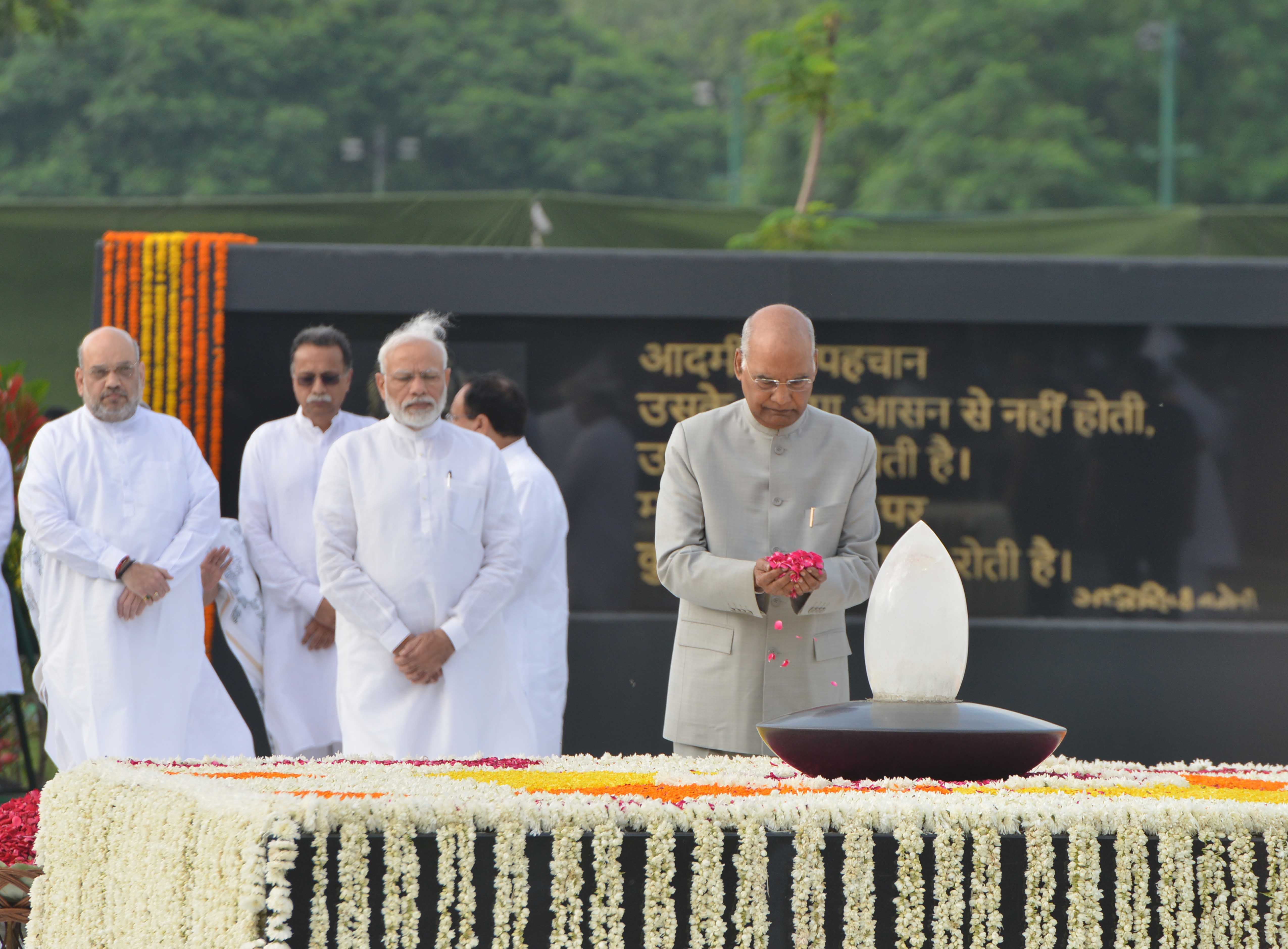 President Ram Nath Kovind offering floral tribute to Bharat Ratna former Prime Minister Atal Bihari Vajpayee on the occasion of the 1st death anniversary at Sadaiv Atal, in New Delhi on Friday. (UNI)