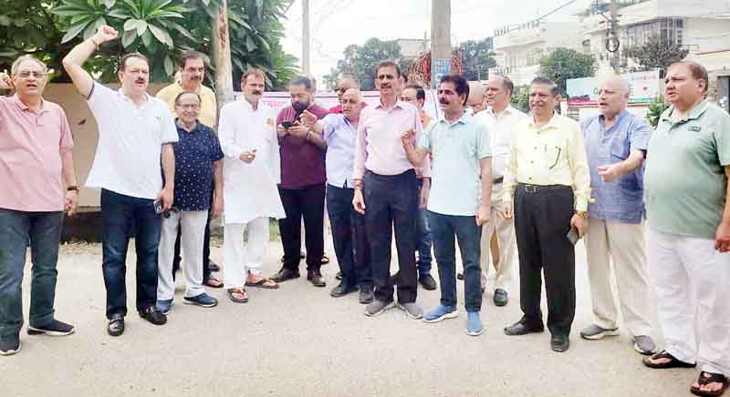 Prominent among those present in the protest were Neeraj Puri, Ajay Kumar Gupta, ex-JMC Councillors, Vijay Gupta, Rohit Mahajan, Vishvamitr Gupta, Advocate Harshvardhan Gupta and Purshottam Gupta.