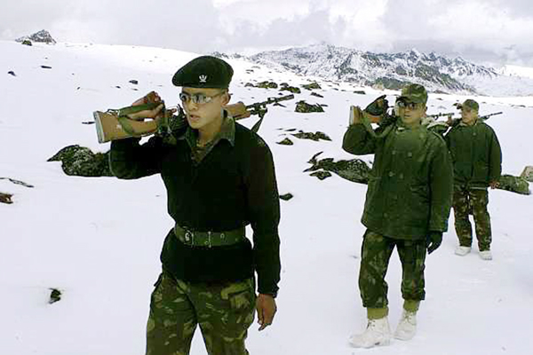 Troops of 5 Ladakh Scouts heading towards the LAC in DBO sector of Leh on Thursday. Photo by Stanzin Orton Gaphel