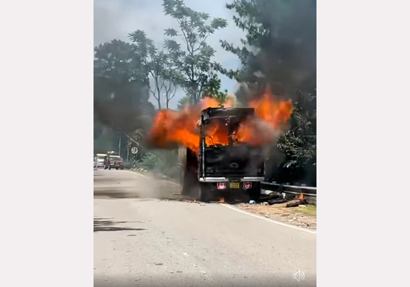 The driver of the truck Suresh Kumar Sharma as soon as saw flames emitting out of the engine parked the vehicle alongside the road at Janghi Morh Batote and jumped out of the vehicle and informed the Police.