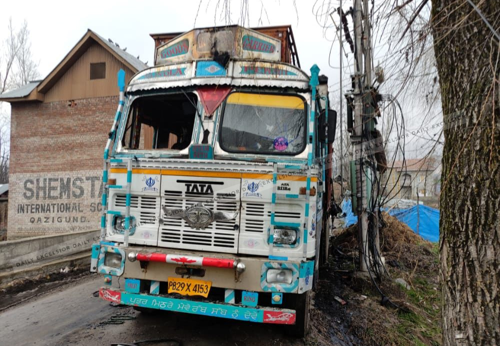 Police said the high voltage electric wire fell on the truck in the Qazigund area of Anantnag district during the night intervening March 7 and 8.