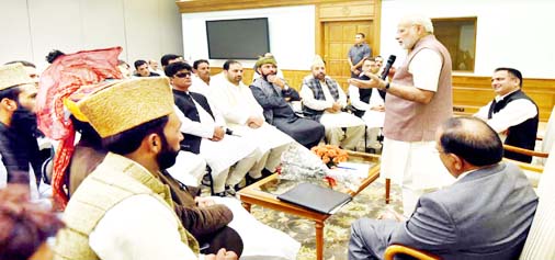 The handout issued by the PMO said a 30 member delegation of the All Jammu and Kashmir Panchayat Conference called on Prime Minister, Narendra Modi, at 7 Lok Kalyan Marg today.