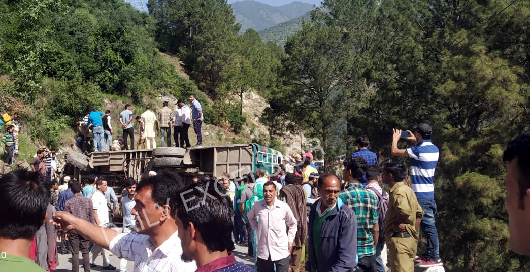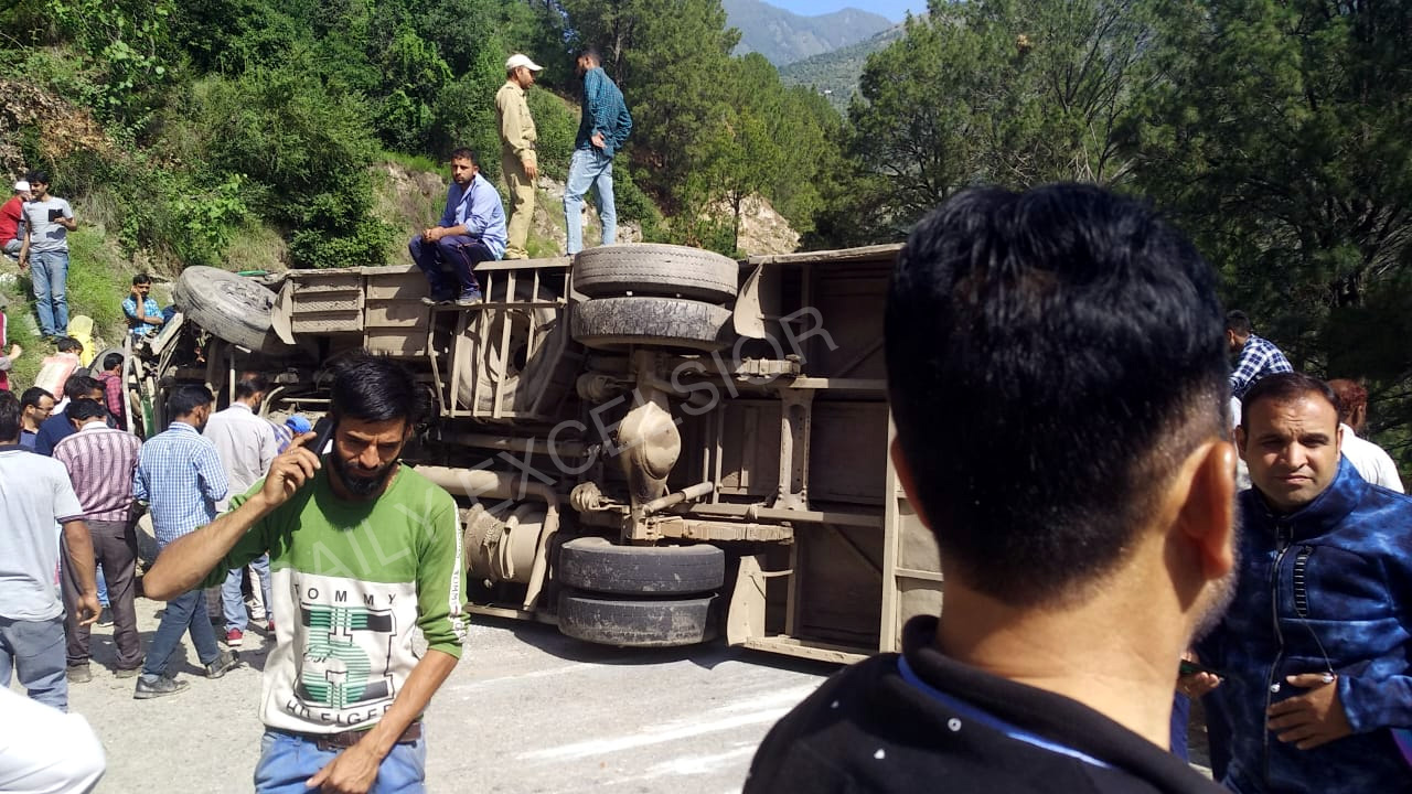 Police said a bus on its way from Gandoh to Jammu, this morning at around 0900 hours met with an accident and turned turtle near Petrol Pump in Ghadsoo.