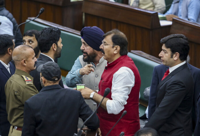 Narinder Singh Raina and Arvind Gupta walked out of the House, stating they were not satisfied with the government’s response regarding the extension of reservation benefits under the Pahari quota to community members residing in Jammu and other plain areas.