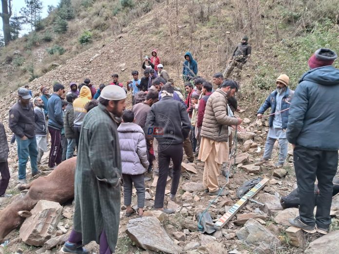 Senior Superintendent of Police of Doda Abdul Qyoom said the load carrier was on its way to Gundana from Thathri when the driver of the vehicle, carrying two passengers and five cattle, lost control.