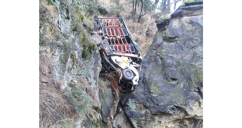 Remains of the vehicle that met with accident in Doda on Monday. -Excelsior/Tilak Raj