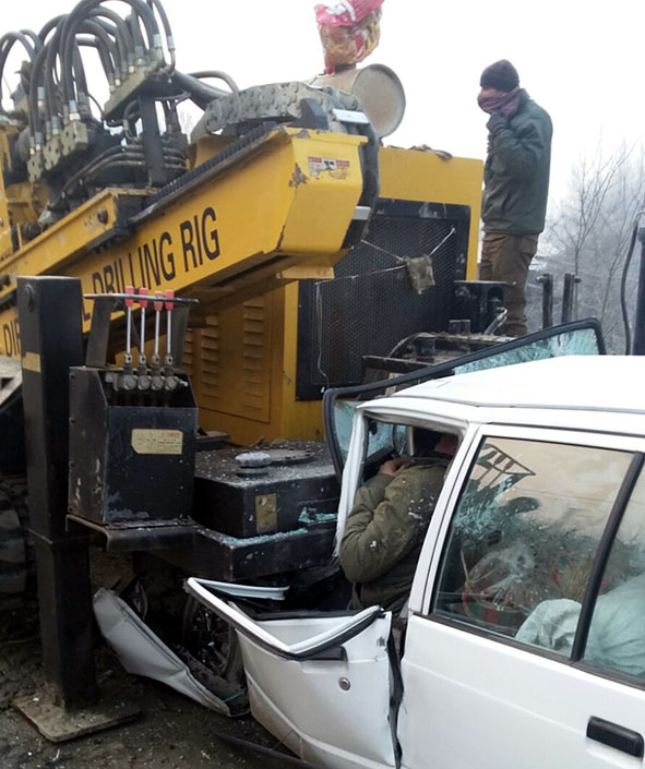 An official told that one of the persons who died was a retired teacher, Ghulam Nabi Sofi, from Nunnar village of Ganderbal district. He said Ramesh Kumar Raina, who was driving the car, was also from Ganderbal. The duo were on their way to Jammu. Their car rammed into a drilling machine stationed on the road near the Entrepreneurship Development Institute and they died on the spot