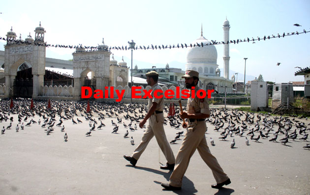 Two police cops walk in front of Dargah Hazratbal shrine during curfew …Excelsior\Shakeel-ul-Rehman By Daily Excelsior - August 5, 2016 Share FacebookTwitterWhatsAppPinterestLinkedinCopy URLTelegramEmailTumblrReddItPrintKoo Follow our WhatsApp channel
