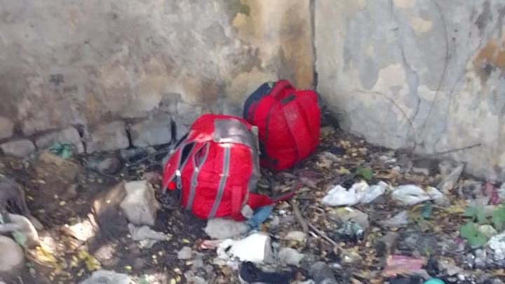 Quoting officials, that two red color bags were seen lying near the boundary wall of PWD colony Mendhar housing official residences of some PRIs.