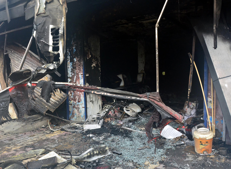 Fire fighters along with tenders reached the spot and started operation to douse the flames. After hectic efforts, the fire was brought under control but till then the showroom was completely gutted.