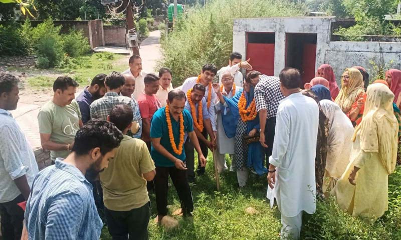 JAMMU, Sept 20: Senior Congress leader and Councillor of Jammu Municipal Corporation (JMC), Rajni Bala of Ward Number 60 along with Uday Bhanu Chib, president JKPYC here today started construction work of Wash Rooms at Guru Ravi Dass Temple in Paloura.