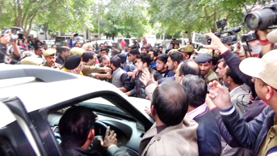 The incident took place as soon as the Minister came out of the conference venue. UIET students, their parents and ABVP activists tried to stop her seeking explanation behind the Government move of taking over control of UIET and eroding autonomy of Jammu University.
