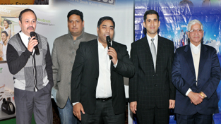 Ujjwal Jain (Regional Manager North) of Luminous Power Technologies speaking during the launch of new and exclusive range of fans, switches, MCBs and wires in a dealers’ meet held at Jammu. Also seen in the picture are Branch Head Rakesh Arora and C P Gupta, Authorised Distributors for Luminous Fans and Products.