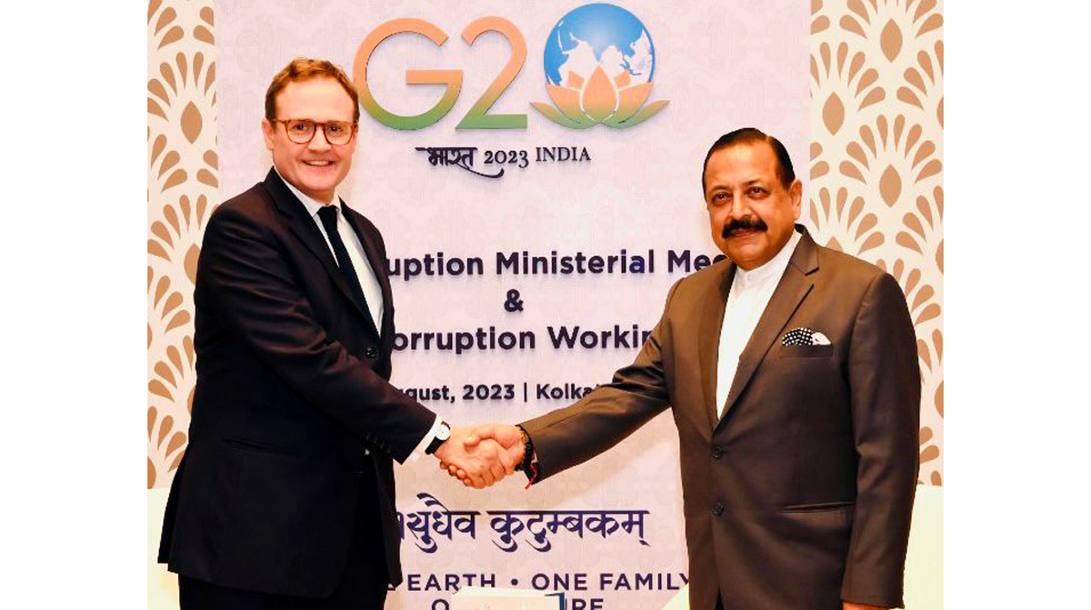 UK Minister for Security, Tom Tugendhat calling on Union Minister Dr Jitendra Singh on the sidelines of the G20 Ministerial Meet at Kolkata.