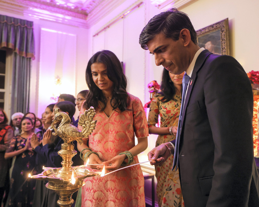 LONDON, Nov 9: British Prime Minister Rishi Sunak and wife Akshata Murty lit Diwali lamps at a special reception at 10 Downing Street, attended by members of the Indian diaspora, parliamentarians, entrepreneurs and Bollywood celebrities.