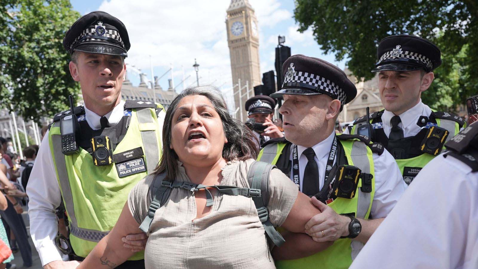 Amnesty International UK’s chief executive Sacha Deshmukh said the protesters in Parliament Square were not inciting violence and it is entirely disproportionate to the point of “absurdity” to be treating them as terrorists.
