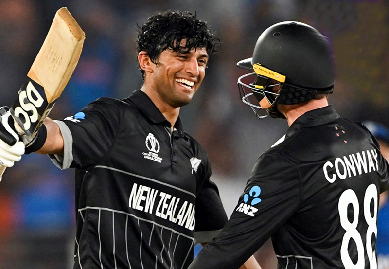 Ravindra brought up his maiden century in his 13th ODI and first in the World Cup, whereas Conway’s ton was his fifth in the format, first in the World Cup and second against England.