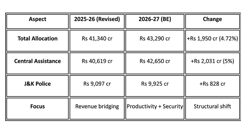 J&K’s Rs 43,290 crore is not merely a blank-cheque welfare; Rs 9,925 crore fortifies police infrastructure under direct Union Home Ministry control. This reinforces that economic revival hinges on law-and-order. Post-Pahalgam attack losses irked traders, who felt 2026 allocations fell short of tourism hits. Yet, by anchoring aid in stability, the budget prevents fiscal uncertainty from derailing services like salaries-crucial after years and years of volatility.