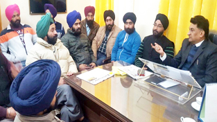 Sikh youth during a meeting with VC, SC, ST, BC Corporation Balbir Ram Rattan at Jammu on Wednesday.