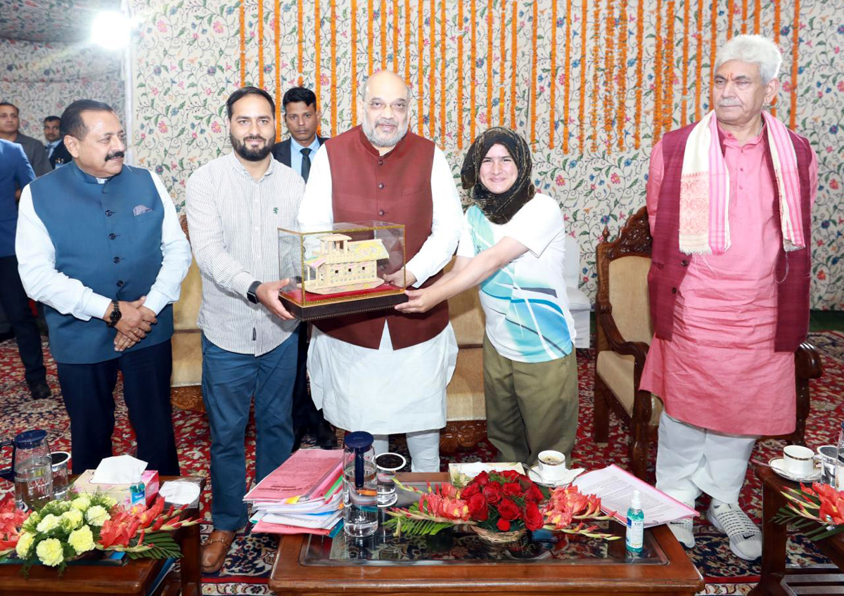 Union Home Minister Amit Shah awarding two-time World Kickboxing Champion and India’s talented daughter, Tajamul Islam who is hailing from a small village of Bandipora (Kashmir) and mentioned that Tajamul’s achievements at such a young age is an inspiration to every Indian. “My best wishes for her bright future,” said Union Home Minister, Amit Shah on his twitter.