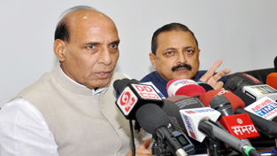 Union Home Minister Rajnath Singh along with Union Minister for DoNER Dr Jitendra Singh addressing a press conference in Guwahati on Saturday. (UNI)