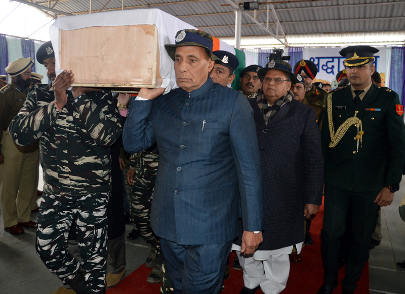 Union Home Minister Rajnath Singh carrying coffin of a CRPF jawan in Srinagar on Friday. By Daily Excelsior - February 16, 2019 Share FacebookTwitterWhatsAppPinterestLinkedinCopy URLTelegramEmailTumblrReddItPrintKoo Union Home Minister Rajnath Singh carrying coffin of a CRPF jawan in Srinagar on Friday. Union Home Minister Rajnath Singh carrying coffin of a CRPF jawan in Srinagar on Friday. Follow our WhatsApp channel