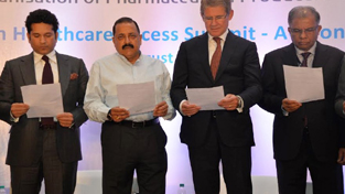 Union Minister and renowned Diabetologist Dr Jitendra Singh, as chief guest, flanked by cricket legend Sachin Tendulkar and Global CEO of Novo Nordisk Lars Rebien Sørensen, at the Summit on Non-Communicable Diseases at New Delhi on Friday.