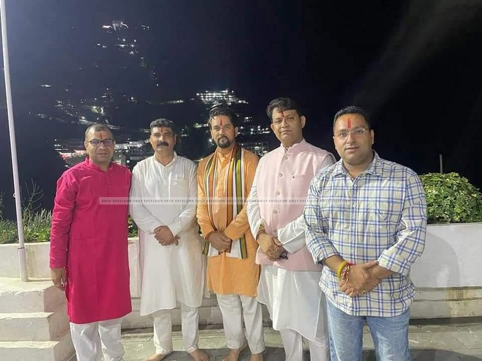 Union Minister Anurag Thakur pays obeisance at Shri Mata Vaishno Devi Shrine in Katra By Daily Excelsior - August 24, 2022 Share FacebookTwitterWhatsAppPinterestLinkedinCopy URLTelegramEmailTumblrReddItPrintKoo JAMMU, Aug 24: Union Minister for Information & Broadcasting Anurag Thakur paid obeisance at Shri Mata Vaishno Devi Shrine in Katra on Wednesday. Follow our WhatsApp channel