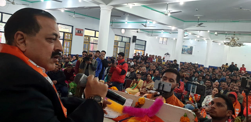 Union Minister, Dr Jitendra Singh addressing a BJP meeting at Reasi on Sunday. —Excelsior/Mengi By Daily Excelsior - December 24, 2018 Share FacebookTwitterWhatsAppPinterestLinkedinCopy URLTelegramEmailTumblrReddItPrintKoo Union Minister, Dr Jitendra Singh addressing a BJP meeting at Reasi on Sunday. —Excelsior/Mengi Union Minister, Dr Jitendra Singh addressing a BJP meeting at Reasi on Sunday. —Excelsior/Mengi Follow our WhatsApp channel