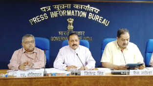 Union Minister Dr Jitendra Singh addressing a press conference after releasing the new Application Services of ISRO’s “Bhuvan” portal at New Delhi on Wednesday.