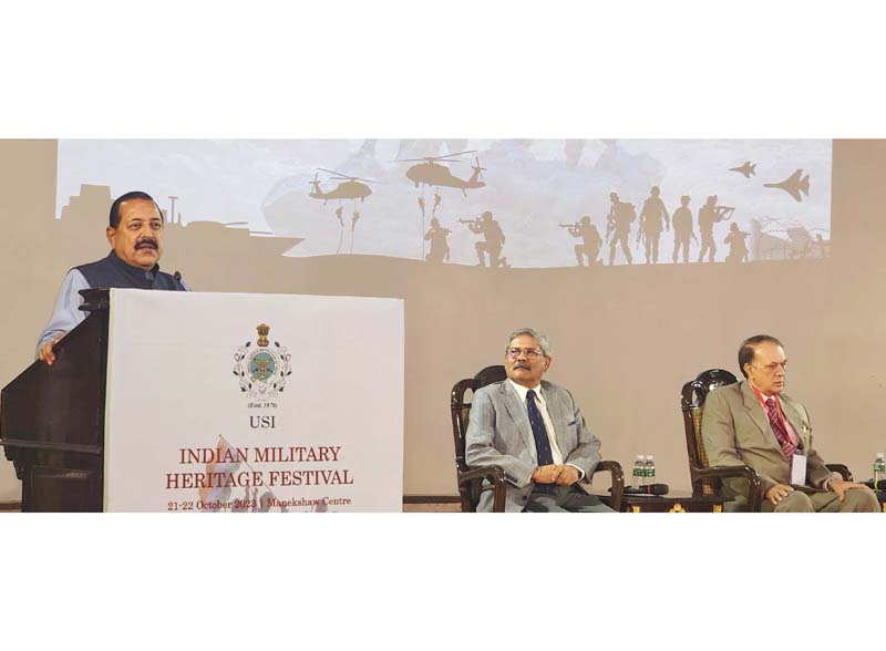 Union Minister Dr. Jitendra Singh addressing “Indian Military Heritage Festival”, organised by the United Service Institution of India (USI) at Manekshaw Centre, New Delhi on Sunday.