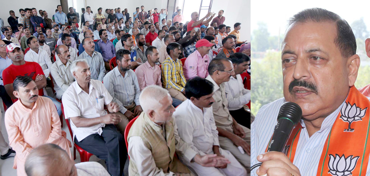 Union Minister, Dr Jitendra Singh addressing a party function at Udhampur on Tuesday. -Excelsior/Rakesh
