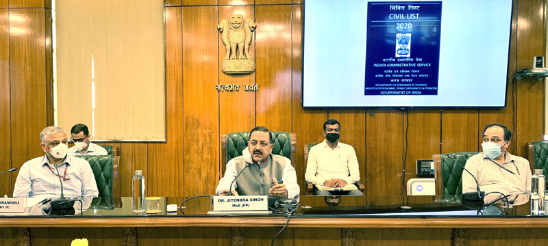 Union Minister Dr Jitendra Singh addressing senior officers after launching IAS Civil List 2020 and its e-version at DoPT headquarters, North Block, New Delhi on Thursday.
