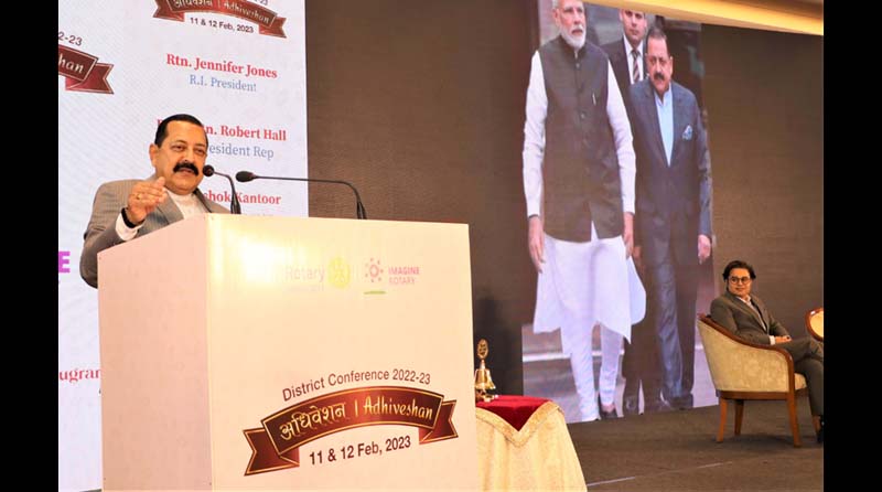 Union Minister Dr Jitendra Singh, addressing the annual conference of Rotary International at Hotel Leela, Gurugram on Sunday.