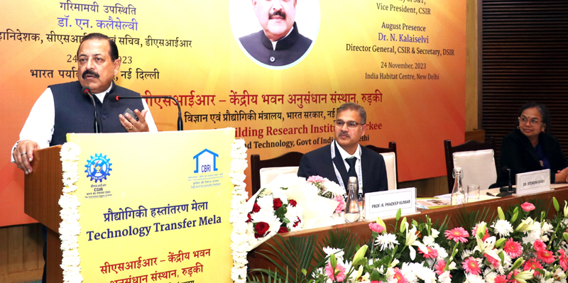 Union Minister Dr. Jitendra Singh addressing the CSIR-CBRI “Technology Transfer Mela” at India Habitat Centre, New Delhi on Friday.